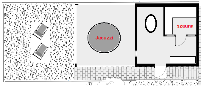 • Szabadtéri (de fedett helyen lévő) 8-10 személyes, télen-nyáron üzemelő akril dézsa jacuzzi